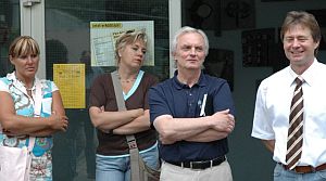 Schulleiter Michael Rabl (links) sieht einem harten Jahr der Improvisation entgegen. Dennoch freut er sich, wenn im September 2007 alles vorüber ist. Da können Oberbürgermeister Thomas Thumann, Schulreferentin Gisela Burger und alle, die für das Projekt mit verantwortlich zeichnen, nur mitfühlen.
