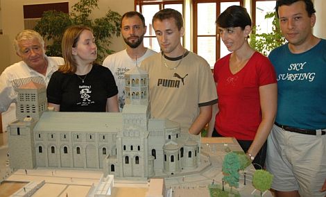 Am Freitag war Vernissage der "Ansichten von Issoire". Zuvor hatte eine Jugendgruppe aus der 70-köpfigen Delegation aus dem Nachbarland alle Hände voll zu tun, die in Kisten verpackten und über 1000 Kilometer transportierten Miniaturen so zu arrangieren wie sie an ihrem angestammten Platz in voller "Lebensgröße" wiederzufinden sind.