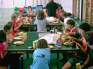 Fun-Park, wo auch abends gegrillt wurde. In der Turnhalle war dann Spiel und Tanz angesagt. Vor dem Schlafen auf Matratzenlagern in der Turnhalle stand noch eine Nachtwanderung auf dem Programm.