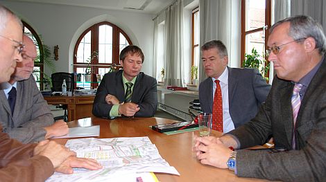 Im Neumarkter Rathaus kamen gleich Pläne auf den Tisch: Martin Hollweck, Rudolf Müller-Tribbensee, OB Thumann, Dr. Wolfgang Wüst und Josef Kreitinger (v.l.)