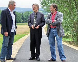 Bei der Verkehrsfreigabe mit Vizebürgermeister Georg Späth und Ingenieur Bernhard Birgmeier meinte Bürgermeister Helmut Himmler, dass für den landwirtschaftlichen Verkehr, für Wanderer und Freizeitsportler optimale Bedingungen geschaffen wurden.