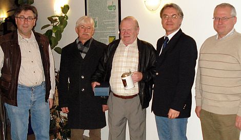 Bürgermeister und Gemeinderäte verabscheideten Hausmeister Albert Stich (Mitte)