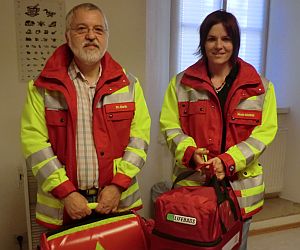 First Responder-Gruppe Lauterhofen, Dr. Gunther Barth und Nicole Matthäi, konnten den Helfern eine spezielle Ausrüstung zur Erstversorgung von Kindern übergeben.