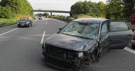 Die Insassen des Pannenfahrzeug - darunter drei Kinder - konnten sich vor dem Zusammenstoß hinter die Leitplanke in Sicherheit bringen. Der Fahrer des auffahrenden Wagens erlitt nur leichte Veletzungen.