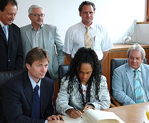 Violet Schwarz trug sich ins Goldene Buch der Stadt ein.
