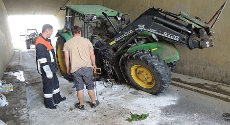 NEUMARKT. Bei einem Traktor-Unfall in der Unterführung unter der Autobahn bei Kadenzofen drohte am Mittwoch Öl in die Schwarzach zu gelangen.