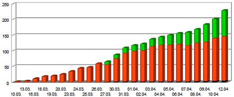 Seit dem vierten Todesfall an Gründonnerstag/Karfreitag (wir berichteten) ist die Zahl der aktuell Infizierten moderat um 4 auf 142 Personen angestiegen.