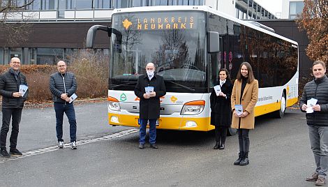 Landrat Willibald Gailler und die ÖPNV-Verantwortlichen Michael Gottschalk, Michael Endres und Isabel Meier präsentierten jetzt zusammen mit Verantwortlichen des Bus-Unternehmens die neue Konzeption des ÖPNV. Vor allem gibt es ein optimiertes Angebot von Neumarkt über Sengenthal und Mühlhausen bis Berching, Dietfurt und auch in Teilbereiche von Freystadt.