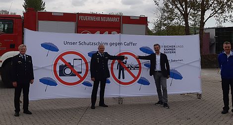 Eine Versicherung spendierte das 2500 Euro teure Stück. Die Sichtschutz-Wand soll bei der Neumarkter Feuerwehr stationiert werden. Sie soll davor schützen, daß Gaffer mit Handys schnell Fotos oder Videos machen und dann in „sozialen“ Medien verbreitet.