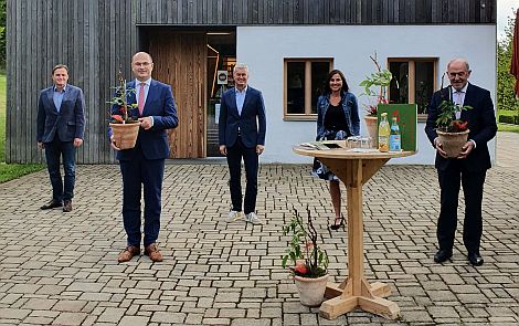 Der Minister und der Landrat erhielten als kleines Geschenk jeweils eine Tomatenpflanze überreicht, die bei guter Pflege im Sommer reichlich Früchte tragen soll.