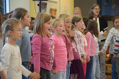 „Hand in Hand“: Die Kinder gestalteten die Feierstunde mit einem Lied und einem Tanz