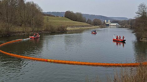 Die Schifffahrtssperre am Main-Donau-Kanal nutzen Feuerwehr, Wasserwacht, Wasser- und Schifffahrtsverwaltung, Landratsamt sowie die Wasserschutzpolizei am Samstag für eine Großübung auf der Bundeswasserstraße. Angenommenes Übungsszenario war ein Unfall mit einem Kleintransporter im Unterwasser der Schleuse Berching. Dabei waren Kraftstoffe und Öle über zuführende Gewässer in den Kanal gelangt.