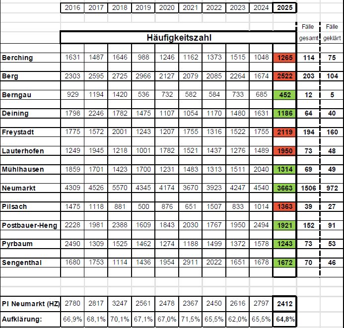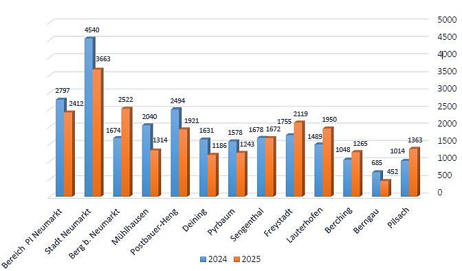 Die Zahlen aus den Gemeinden im Zuständigkeitsgebiet der Neumarkter Polizei