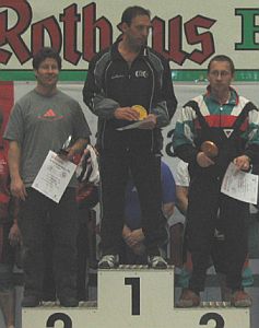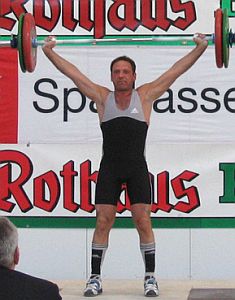 Mit Chancen auf einem Platz am begehrten "Treppchen" reiste auch Bernd Hornof an, für den am Samstag abend die "Stunde der Wahrheit" schlug. Mit drei gültigen Reissversuchen von 97 Kilo, 102 Kilo und 105 Kilo legte er bereits den Grundstock zum späteren Sieg, denn seine härtesten Konkurrenten Michael Branke (Baunatal) und auch der Thüringer Ralph Schubert kamen über 96 Kilo nicht hinaus. Schon bei seinem ersten Stossversuch mit 122 Kilo hatte sich Hornof die Meisterschaft bereits gesichert.