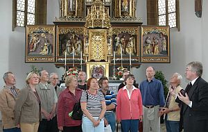 So eine "Ruheecke" im Trubel ist die Hofkirche, in die Dekan Richard Distler am Samstag (Wiederholung am Sonntag um 16 Uhr) zu einer kurzweiligen Führung einlud. So erfuhren die Teilnehmer, dass der Turm des Gotteshauses ein Pfalzgraf den Neumarktern zum Geschenk gemacht hat, weil der von Dekan Distler als "alter Knacker mit über 50" Apostrophierte eine 15-Jährige zur Ehefrau genommen und die Hochzeit nicht in Neumarkt, sondern im fernen Heidelberg ausgerichtet hat. Um die Neumarkter wieder zu versöhnen, baute er ihnen einen Turm, der allerdings nicht ganz zum Baustil des Kirchengebäudes passt. Einem Architekten Berschneider - hätte er damals schon gelebt - wäre dieser Lapsus sicherlich nicht unterlaufen.
