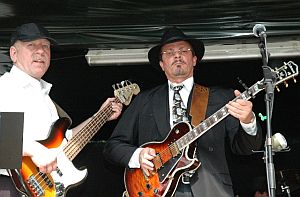 Um die Ecke: Blues vom Feinsten. Die "Barrelhouse Blues Band" hätte unter ihrer Bühne am Klostertor einen besseren Besuch verdient. Aber das handverlesene Publikum nahm für sich und für die Akteure in Anspruch, dass Qualität vor Quantität geht.