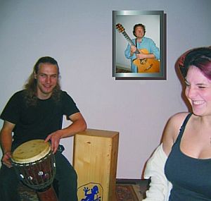 Henning Frank, Jule Weidinger und (als Bild an der Wand) Golly