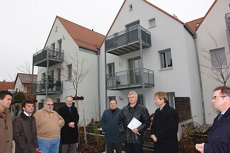 Die Stadt hatte über Jahre hinweg die notwendigen Grundstücke erworben und dann im Areal Grünbaumwirtsgasse – Rainbügl – Entengasse – Spitalgasse 26 Wohneinheiten in sechs Stadthäusern sowie drei Mehrfamilienhäusern und eine Quartiersgarage mit 32 Stellplätzen geschaffen. "Gehobenes Wohnen mitten in der Altstadt mit kurzen Wegen, hieß das Motto", erinnerte der Oberbürgermeister inmitten des 800 Quadratmeter großen Innenhofes. Einige Wohnungen wurden auch behindertengerecht ausgestattet.