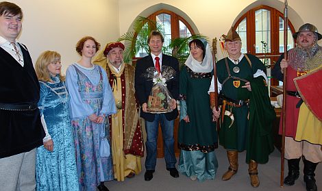 Der Oberbürgermeister erhielt von den Wolfsteinfreunden eine Schokoladenburg.