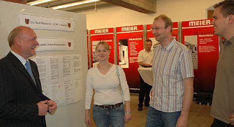 Stadtbaumeister Rudolf Müller-Tribbensee (links) erläutert Bauwilligen die Vorzüge eines Grundstücks im Baugebiet Untere Klosterwiese.