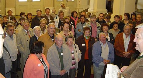 Die Reisegruppe der CSU Stadtmitte und Stadtsüden wird im Maximilianeum von MdL Herbert Fischer begrüßt.
