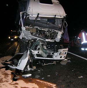 Dies bemerkte der 43jährige Lkw-Fahrer zu spät und fuhr ungebremst auf den vorausfahrenden slowakischen Sattelzug auf.
