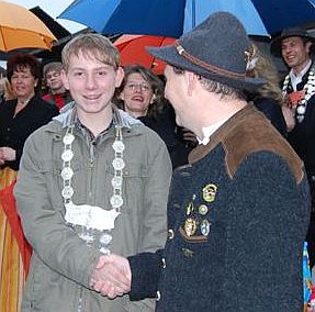 Michael Rupprecht hatte nur kurzzeitig seine "Amtskette" abgegeben, um sie von Schützenmeister Peter Misoch für ein weiteres Jahr wieder umgehängt zu bekommen. Bis zuletzt wurde geheim gehalten, wer wohl der neue Schützenkönig werden würde; dann wurde unter dem Getöse der Böllerschützen das Geheimnis gelüftet.