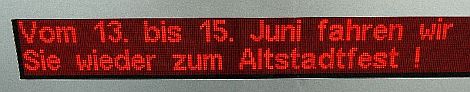 NEUMARKT. Da haben sich die Stadtwerke (wieder einmal) ganz schön weit aus dem Fenster gelehnt: "Vom 13. bis 15. Juni fahren wir Sie zum Altstadtfest", verkünden sie großspurig auf ihrer Anzeigetafel am Neumarkter Bahnhof.