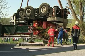 Nach Angaben der Polizei befuhr er gegen 6.15 Uhr mit seinem Kranwagen die B299 in Richtung Beilngries. Nach dem Ortsausgang von Berching kam er mit seinem 38 Tonnen schweren Gefährt nach rechts von der Fahrbahn ab, durchbrach die Leitplanke, überschlug sich und stürzte in den Ludwig-Donau-Main-Kanal.