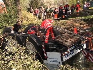 NEUMARKT. Der spektakuläre Sturz eines 38 Tonnen schweren Kran-Fahrzeugs in den Ludwig-Donau-Main-Kanal sorgte am Mittwoch für erhebliche Verkehrsbehinderungen auf der B 299 (
