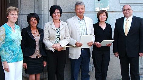 Von links nach rechts: Personalratsvorsitzende Anna Hiendl, Maria Fuchs, Regina Lincke, Peter Rohn, Ursula Fahrnbauer und Amtsleiter Paul Prengel