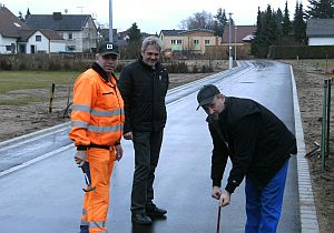 Ziel der Gemeinde war die Fertigstellung der Erschließungseinrichtungen vor Einbruch des Winters, was auch erreicht wurde. Vor Ort überzeugten sich jetzt Ingenieur Bernhard Birgmeier sowie Bauhofleiter Willi Ulherr und Wassermeister Michael Federer von der Qualität der Arbeiten.