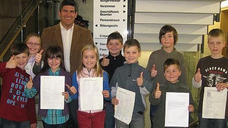 Die Schüler besprachen daraufhin das weitere Vorgehen in der Klasse und wurden prompt aktiv. Jetzt kamen neun Kinder (in Begleitung ihrer Eltern) ins Rathaus und übergaben dem Bürgermeister eine Unterschriftsliste mit 93 Unterstützern.