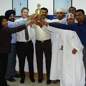 Die omanische Belegschaft jubelt über die Auszeichnung vom Sultan.