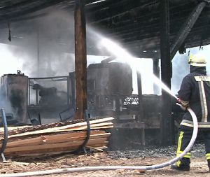 Brandursache dürfte ein technischer Defekt sein, hieß es am Nachmittag. Die riesige Säge, mit der den ganzen Tag schon meterlange Baumstämme zerkleinert wurden, hatte gegen 13.40 Uhr plötzlich Feuer gefangen.