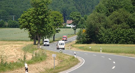Kurvig mit Kuppen: die B 299 bei Stieglitzenhöhe