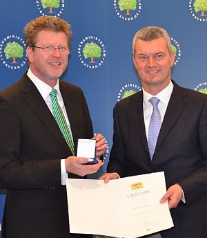 Minister Huber überreichte die Medaille an Werner Thumann