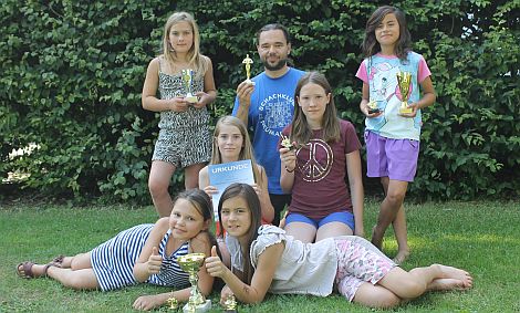 Die erfolgreichen Neumarkter Mädchen (v.l.): Maria Franke, Nina Kunisch, Trainer André Schilay, Fabienne Held, Radena Burger, liegend: Maria Schilay, Daiana Burger