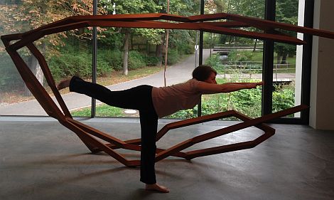 Man will damit "hineinfinden" in die Kunstfigur von Robert Schad, heißt es in der Einladung. Mit einfachen Bewegungen aus dem Tai Ji will man "einschwingen in die tänzerische Linienführung der Schad-Skulpturen".