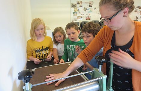 Danach durften die kleinen Künstler selbst kreativ mit Ölkreide und Draht kleine Kunstwerke gestalten, den phantasievollen Prägedruck zeigten die Kinder anschließend stolz ihren Eltern.
