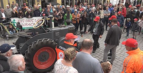 Die Traktoren und kleineren Zweiräder fuhren einen kleineren Stadtkurs