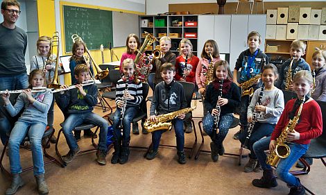 Seit einigen Wochen wird an der Grundschule nun mit Posaunen und Klarinetten laut gehupt und getrötet - manchmal sogar schon um halb acht vor Schulbeginn. „Die Kinder sind wirklich Feuer und Flamme“, so Meiler. „Das ist ein ganz besonderer Glücksfall, den Kindern hier sowas ermöglichen zu können.“