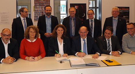 In Parsberg unterzeichneten die Landräte aus Neumarkt und Regensburg die Verträge zur Gymnasium-Generalsanierung