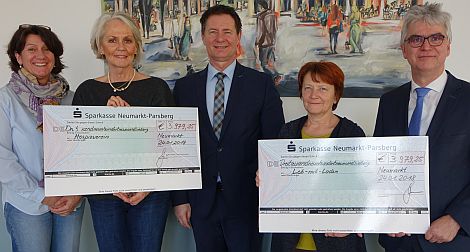 NEUMARKT. Oberbürgermeister Thomas Thumann hat an die Vorsitzenden des Hospizvereins, Ursula Nießen und Eva Bärtl sowie an Elfriede Zenglein und Detlef Edelmann vom Leb-mit-Laden jeweils einen Scheck in Höhe von 3.979,25 Euro überreicht.