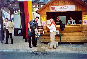Auch heuer war die Stadt Neumarkt mit einem Informationsstand beim Stadtfest in der Partnerstadt Mistelbach vertreten. Den Bieranstich übernahm dabei am Neumarkter Stand Mistelbachs Bürgermeister Ing. Christian Resch im Rahmen eines Platzkonzertes des Musikvereins Ebendorf. Bürgermeister Erich Bärtl war in Vertretung von Oberbürgermeister Alois Karl nach Mistelbach gereist und freute sich als Partnerschaftsreferent über das große Interesse am Neumarkter Stand. „Auch dieses Treffen hat eindrucksvoll unter Beweis gestellt, dass die Partnerschaft mit Mistelbach nicht nur hervorragend funktioniert, sondern überaus lebendig ist. Der Zuspruch der Mistelbacher an Informationen und Souvenirs aus Neumarkt war enorm.“ Den Neumarkter Stand betreuten der frühere Stadtrat Rudolf Lehrer, Franz-Xaver Horvath, Renate Mursch und ihr Gatte. Ihnen dankte Bürgermeister Bärtl für ihren Einsatz sehr herzlich. Ein besonderer Höhepunkt des Stadtfestes war die große Schlagerparty mit Oliver Haidt und Andy Borg. Weitere Höhepunkte waren dann die Festmesse am Hauptplatz mit anschließendem Frühschoppen, den die Stadtkapelle Mistelbach unter der Leitung von Magister Karl Bergauer gestaltet. Am Nachmittag gab es den „Hauerumzug“ vor dem Rathaus sowie einen festlichen Ausklang mit der Stadtkapelle Mistelbach. Bei diesem Fest hat sich auch die ungarische Stadt Pécel mit einem Informationsstand vorgestellt, mit der Mistelbach eine enge Städtefreundschaft verbindet. In diesem Zusammenhang wurde im Rathaus der Stadt Mistelbach eine Sonderausstellung ungarischer Künstler von Bürgermeister Ing. Christian Resch, Bürgermeister Erich Bärtl und dem ungarischen Bürgermeister aus Pécel, Dr. Benkovics Gyula eröffnet. Außerdem fand im Barockschlössel der Stadt Mistelbach eine Wanderausstellung unter dem Motto „Bewegtes Leben“ statt, die ebenfalls an diesem Tag von Bürgermeister Resch und Bürgermeister Bärtl feierlich eröffnet wurde. Diese Ausstellung beinhaltet ein Stück gelebte Frauengeschichte. Die unterschiedlichen Seiten weiblicher Existenzen in unserer Gesellschaft sollen durch die Fokussierung auf bestimmte Themen wie etwa „Frauen und Weinbau“, „Frauen und Krieg“ und „Frauen am Arbeitsmarkt“ ins öffentliche Bewusstsein gerückt werden. Erstellt am