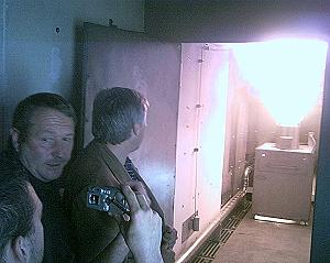 Der 260 000 Euro teure HighTech-Container wurde am Mittwoch von Oberbürgermeister Alois Karl und dem Neumarkter Kommandanten Manfred Meier der Presse vorgestellt. Er soll bei der 20-Jahr-Feier der Neumarkter Feuerwache (vom 24. bis 26. September) eingeweiht werden. Erstmals haben junge Feuerwehrleute die Möglichkeit, unter realistischen Bedingungen zu üben. Und "realistisch" ist durchaus wörtlich gemeint: Plötzlich stehen Gasflaschen in hellen Flammen, schlagen meterhohe Flammen aus einem Topf, der scheinbar auf dem Herd vergessen wurde. "Heiße Übungen" nennen Feuerwehrleute derartiges Training. Der gefürchtete "Flashover" kommt auf Knopfdruck - und ließ Oberbürgermeister und Journalisten wegen der ungeheuren Hitze und dem schlagartig einsetzendem dichten Qalm noch ein paar weitere Schritte zurücktreten...