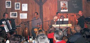 Fulminanter Saison-Auftakt NEUMARKT. Mit einem fulminanten Argile-Konzert eröffnete am Samstag das Oberweilinger Kulturzentrum seine vierundzwanzigste Saison. In der übervollen Kneipe zelebrierten drei Musiker um den Nürnberger Flötisten Dieter Weberpals eine Fusion aus Jazz, marokkanischer und irakischer Folklore – und was für eine! Der marokkanische Sänger und Oud-Spieler Abdel Illah Hajim eröffnete das Konzert mit virtuosen Lautenklängen und Liedern aus seiner Heimat und wurde dabei vom Nürnberger Peter Horcher auf diversen fernöstlichen Perkussionsinstrumenten begleitet. Später stießen der an der Flöte immer kunstfertiger werdende Dieter Weberpals und der Perkussionist und Tastenvirtuose Talabani Dilshad - ein Iraker - dazu. Allein dessen Vierteltonkeyboard wäre schon die Reise nach Oberweiling wert gewesen. Als dann aber schließlich Peter Horcher zum Akkordeon griff und mit unglaublichen Grooves und Rhythmen aufwartete, musste man neidlos zugestehen: besser kann der Begriff „Weltmusik“ nicht in die Tat umgesetzt werden. Entsprechend andächtig lauschte das begeisterte Publikum. Das Konzept der Oberweilinger Veranstalter scheint immer besser aufzugehen: nämlich nicht auf Altbekanntes zu setzen und dieses Jahr für Jahr wiederzukäuen, sondern – wann immer sich die Möglichkeit bietet - neue musikalische Wege zu weisen und dem Publikum damit die Chance zu eröffnen, alte Hörgewohnheiten aufzuknacken und den Horizont zu erweitern. Erstellt am