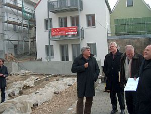 Wohnen wie im Paradies![]() Auf der Hoffläche über der Tiefgarage erläutern Oberbürgermei- ster Alois Karl, Wirtschaftsreferent Josef Graf und Theo Nutz (rechts) die paradiesische Wohnanlage nahe St. Johannes. Foto: Erich Zwick