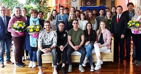 BRK-Kreisgeschäftsführer Klaus Zimmermann sowie Eva-Maria Fruth, die für die Organisation zuständig ist und als Bindeglied zwischen Schule und den Ausbilderinnen wirkt, gratulierte zusammen mit Vertretern der Schulleitung.