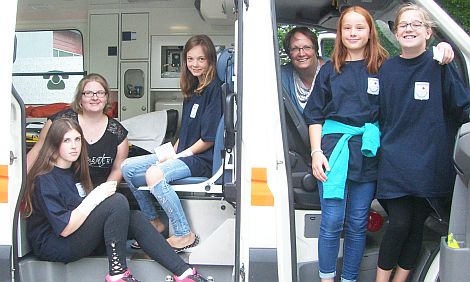 Die neue Jugendrotkreuz-Gruppe besichtigte ein Sanitätsauto